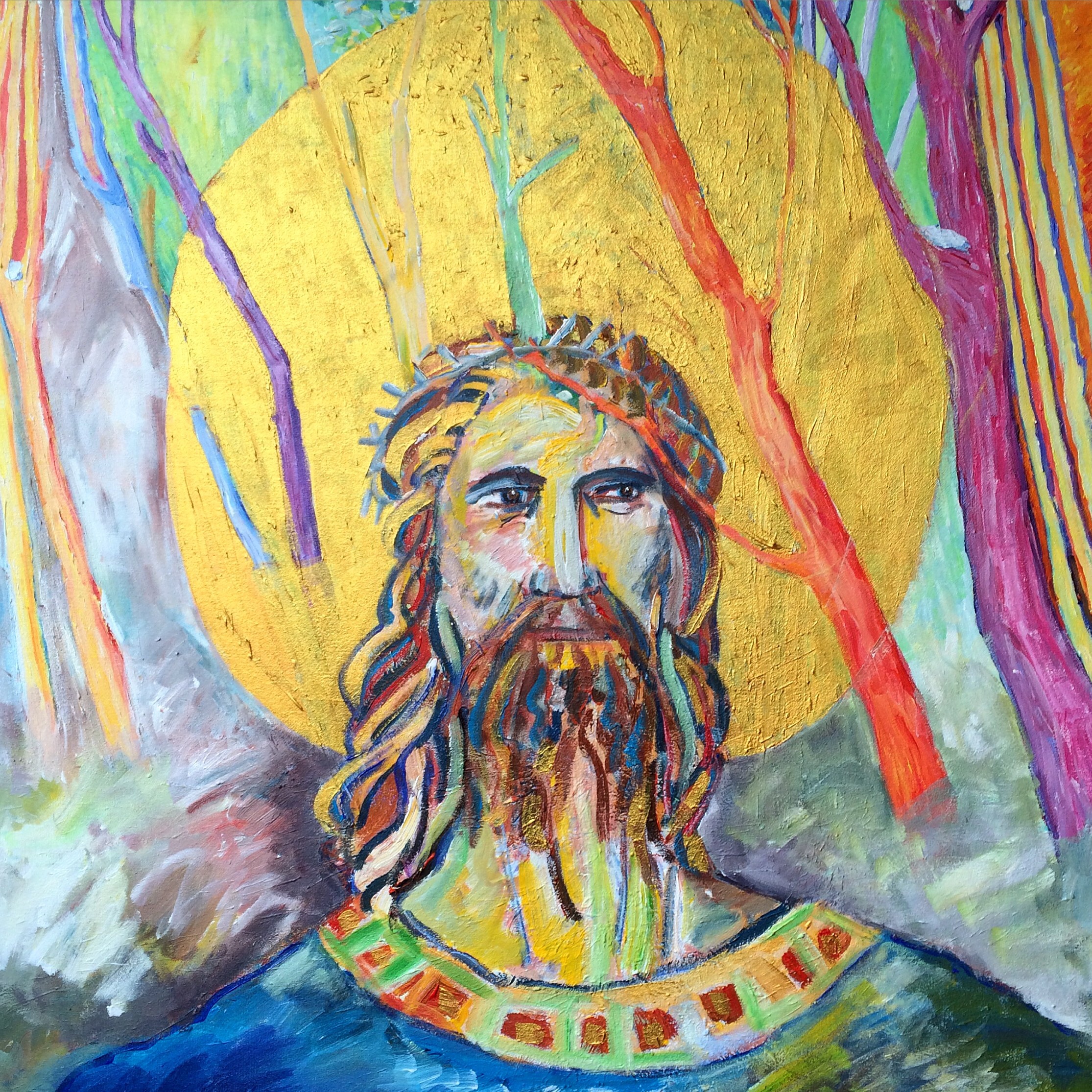Today I was repainting one of my old works, working a theme of the Christ wearing the crown of thorns by Fra Angelico with the landscape, or the world.