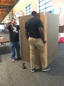 Cat, our conference liaison, helped me get my paintings inside. Then the two men from Thrivent Financial helped me build out the last two walls of my booth. Jason and Michael even brought me lunch back from town while I hung my art on the walls.
