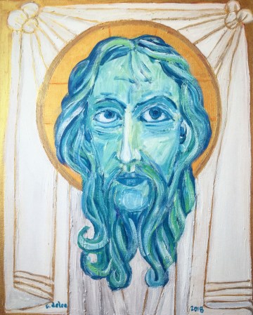 My latest icon of the face of Christ is based on the Napkin of Christ or The Image Not Made by Human Hands. The tradition tells us the Lord washed his face on a cloth and the image of his face transferred directly to it. King Abgar took the image bearing cloth to Edessa and hung it above the city’s entrance, where the people venerated it.