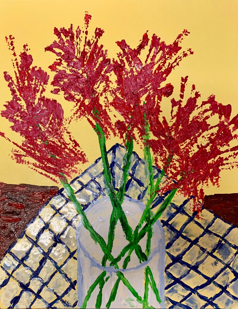 Likewise, if we’re beginners in art, we have to suspend our criticism of our imperfections in our work. Instead, we reframe our critiques into “areas which need improvement.” Even now, after decades of working in my studio, I’ll let a canvas rest near me in my living room. I’ll eye it in different lights, until I hear it call my name. I’ve totally repainted some of these, and others I’ve destroyed. A few I leave alone. All of us will keep learning something new, both from our “good paintings “ and our “need improvement works.” Most likely, artists quit painting when they they think they have nothing left to learn, or when they lose the courage to risk moving into the unknown mystery, as it’s written in 1 Corinthians 2:9—