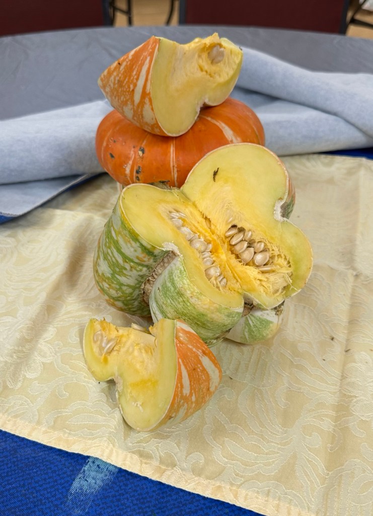 We nod to old traditions and seek to interpret them in new ways in our Friday Art Class. The past two weeks we have used the Day of the Dead skull motif and turban pumpkins as our inspiration. These both have the October vibe about them. The Mexican festival of Dia de los Muertes is kin to our All Saints Day, since it is a veneration of the ancestors and a celebratory feast in their honor.