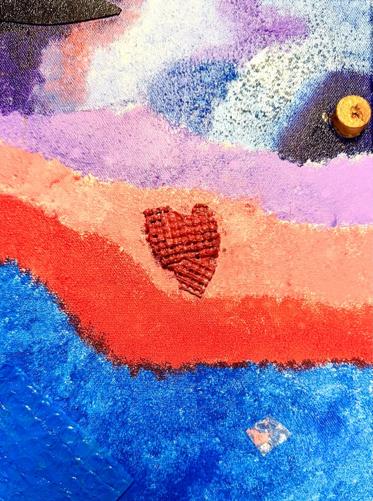 I had started my small canvas the week before when I was half sick. My hand, heart, and mind never feel quite connected when I feel bad, but I still work anyway. The beauty of acrylics is I can paint over them later. In fact, this is a repurposed canvas. If a work does not “speak to me” after a few months, I either cut it up to reweave it or paint it over entirely. I always think I will find hope for it in another form, but it may need to take its own journey to find its best self.