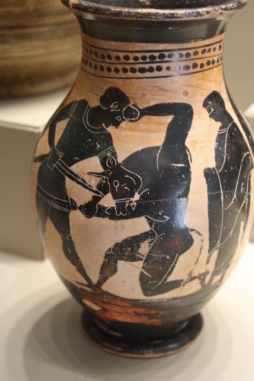 The enthroned Christ follows the thematic form of Zeus, king of the gods, seated on his throne. A good example is statue from the Archaeological Park of Campi Flegrei at the Castle of Baiae on the Gulf of Naples. This statue of Zeus Enthroned is a 29-inch-high marble statue dating to the 1st century B.C. and is likely of Greek manufacture.
