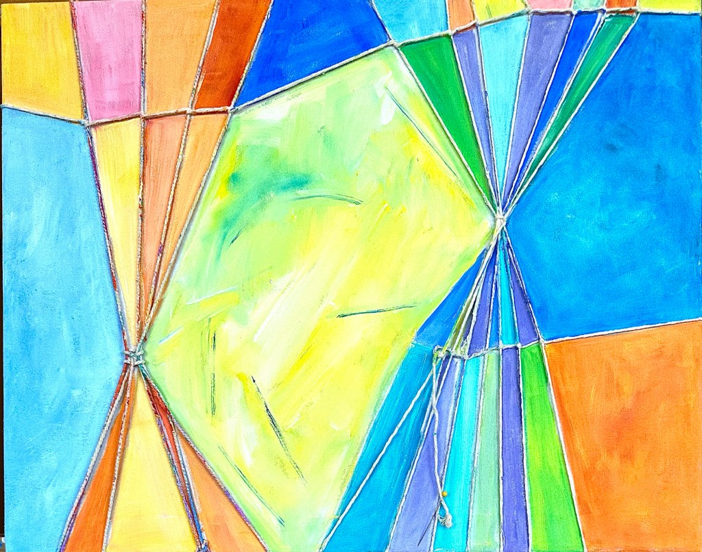 I had started my small canvas the week before when I was half sick. My hand, heart, and mind never feel quite connected when I feel bad, but I still work anyway. The beauty of acrylics is I can paint over them later. In fact, this is a repurposed canvas. If a work does not “speak to me” after a few months, I either cut it up to reweave it or paint it over entirely. I always think I will find hope for it in another form, but it may need to take its own journey to find its best self.