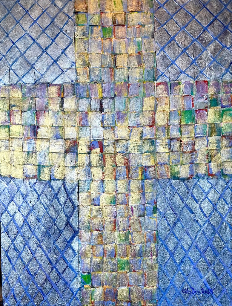The square is a symbol from the language of the icons for the earth, so I painted it primarily in earth colors. The surrounding is in various shades of blue or blue blacks. The abstract doves hold an edge of green in their beaks. Is it too abstract to understand? This is a creative solution to “color wheel,” not a travel book. It is a painting, not a map. If you need to find Mount Ararat, ask your GPS for directions. Not everything has to be functional. Some things can be “art for art’s sake.”