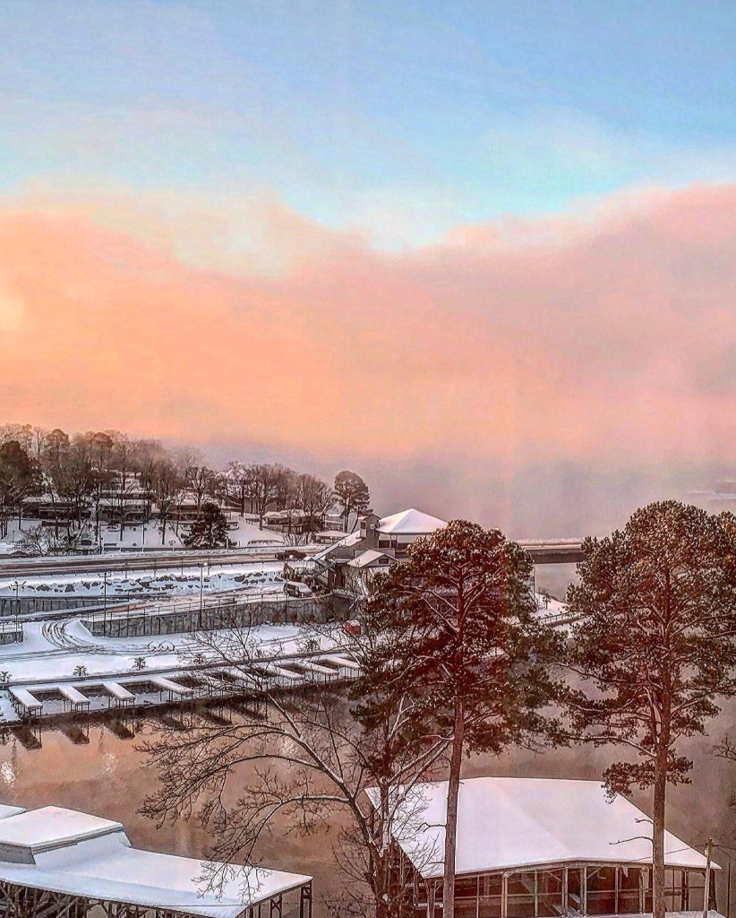 Since we in Arkansas didn’t get the brunt of this storm, our emotional reaction to it wasn’t strong or deep. This might have been different if we had gone through an extended period of time without power. Many of us noted only the closings of local businesses or the lack of certain products on the shelves. My utility bill wasn’t much higher than last month. Our paintings of the recent snowstorm reflected this experience. I asked our group to bring a photograph of the snow from their home life. Mike brought his backyard deck and Gail brought her tree filled landscape. I worked on a traditional landscape as seen from my window high above the lake, looking out over the bridge. Our snowscapes were calm, quiet, and serene. There wasn’t a sign of trauma anywhere, unlike the ongoing mass trauma event still affecting the state of Texas.