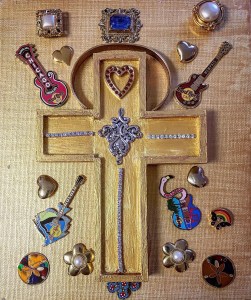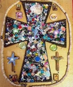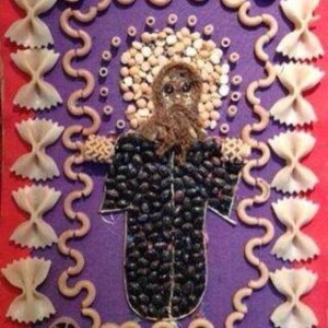 Making Found Object Icons is an art project that evolved out of the Great Macaroni Multimedia Traveling Artandicon Show. In seminary during Art Week our fellow students were horrified we were making sacred images out of edible products, such as macaroni, lentils, peas, and beans.