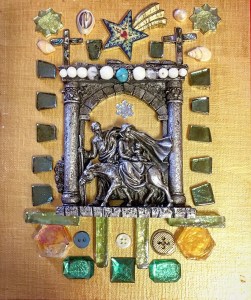 They get value in the spiritual real from the work they do, for the icon opens a window into heaven. As they arrange the jewels and found objects, and move them to a better position, the icon comes alive under their hands and begins to breathe. Only the person, who will be still long enough to hear the silence from beyond the open window, can hear the voice of God in this world. For this person, the icon is a treasure, and a place of holy focus, no matter how small or how simple the materials.