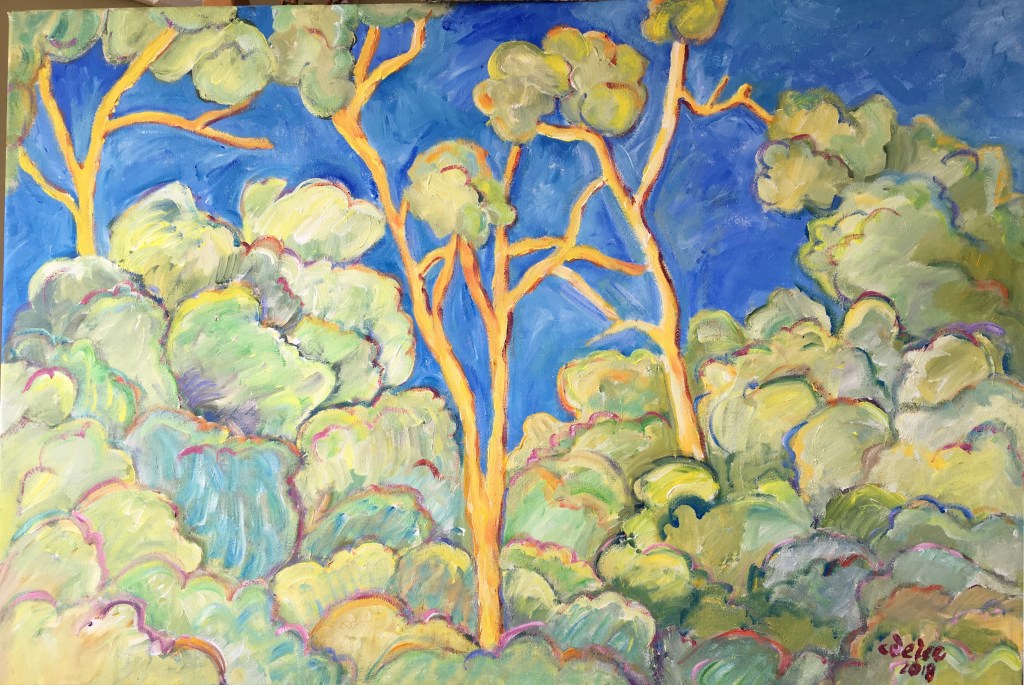 This is a Landscape from Garvan Woodland Gardens, a work in progress, on a recycled woven canvas. I didn’t like the other two paintings I destroyed to make this canvas, and the work I put on the intermediate stage also didn’t satisfy me long term.
